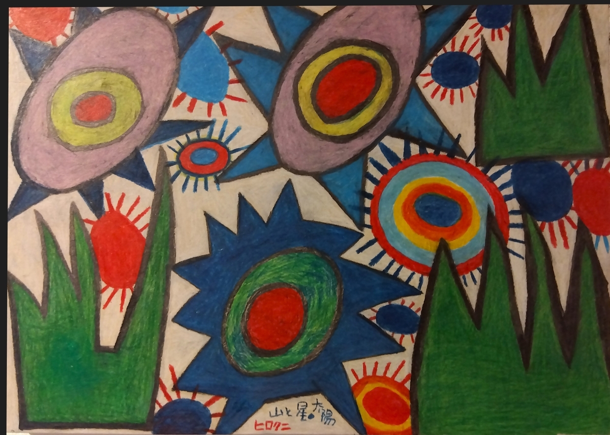 タイトルは、絵に書き込まれているとおり、「山と星の太陽」。